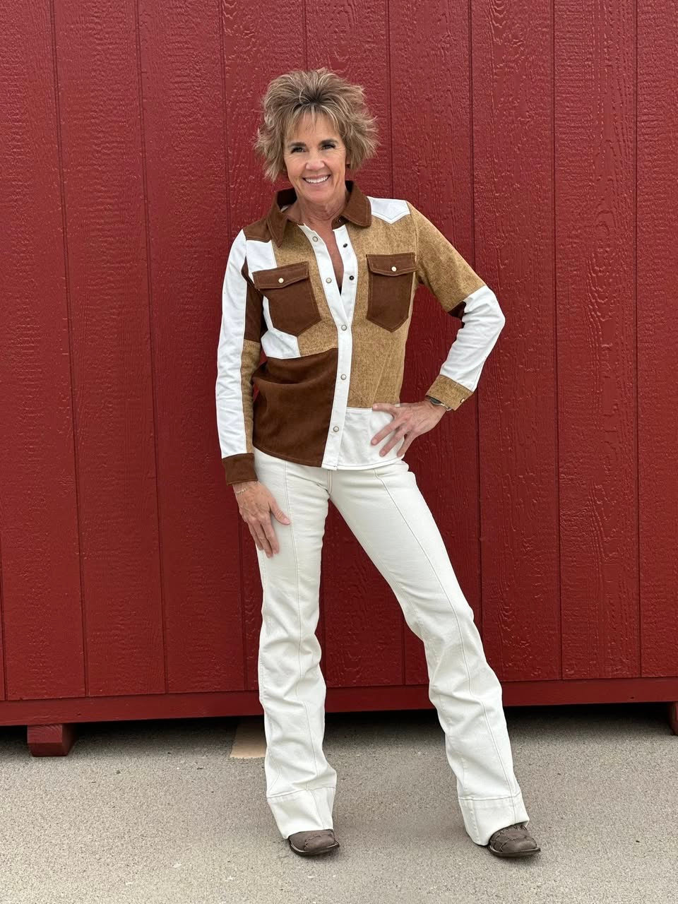 Lucky & Blessed Color Block Denim Snap Shirt